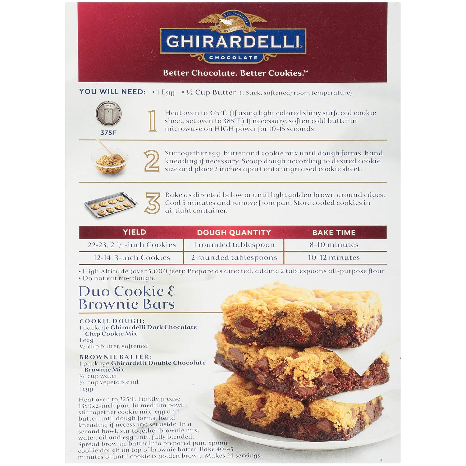 Ghirardelli Dark Chocolate Chip Cookie Mix Shop Baking Mixes At H E B from images.heb.com 8 calories of brown sugar, (0.01 cup, packed). 1864 ghirardelli chocolate manufactory vintage look metal sign. Drop tablespoon of dough per cookie onto ungreased cookie sheets. Try this ghirardelli chocolate chip cookies recipe, or contribute your own. 2¼ cups unsifted flour 1 teaspoon baking soda ½ teaspoon salt 1 cup (2 sticks) butter ¾ cup sugar ¾ cup packed brown sugar 2 eggs 2 teaspoon vanilla 1 cup chopped walnuts or pecans (optional) 11 ounce bag of ghirardelli double chocolate chips. {'name':'classic chocolate chip cookies','id' : With quality ingredients, you get delicious results. Add them to your baking supplies to bake the ultimate chocolate chip cookies and decadent brownies.